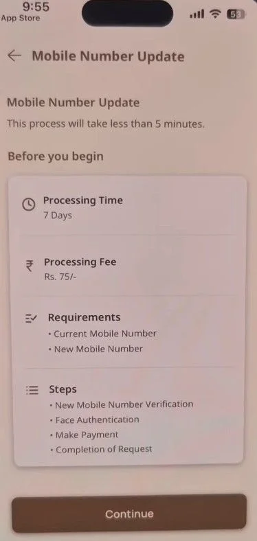 3️⃣ मोबाइल नंबर अपडेट करने का शुल्क कितना है?