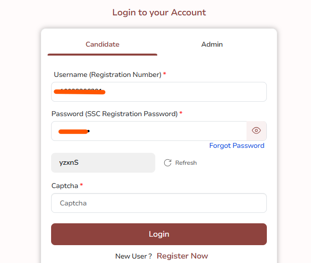 - अपना Registration ID और Password (एडमिट कार्ड में दिया गया) डालकर लॉगिन करें।